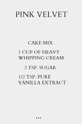 This cake honestly could be the most easiest I've ever baked yet! To begin, just select your favorite cake mix at the market, just as long as it's a strawberry, or in my case pink velvet. Both are basically the same, but the pink velvet seems to be lighter and less strong.